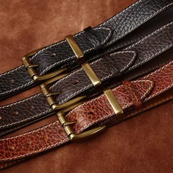 Men's Genuine Leather Belt 1.5" Wide with Solid Brass Buckle